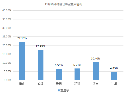仓库空置率最高的城市为大连、重庆,均高于20%。相较10月,因业务收缩和合同到期,大连部分仓库租户在本月退仓,导致当地仓库空置率有所上涨,涨幅为12.92%;重庆因部分物流园区项目建成交付,如菜鸟网络(4万㎡)、嘉民重庆(6.5万㎡),导致仓库空置率有所上涨,涨幅为5.91%。