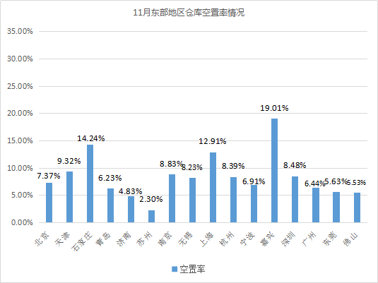 2019年11月中国通用仓储设施空置率情况