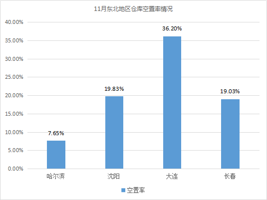 全国32个城市仓库平均空置率为10.85%,环比上涨0.65%。其中,东北地区仓库空置率(20.68%)远高于西部(11.35%)、中部(10.30%)、东部(8.41%)地区。相较10月,东北、中部地区仓库空置率有小幅上涨,涨幅分别为2.10%(东北地区)、1.90%(中部地区);西部、东部地区仓库空置率波动不大,增(降)幅在±1%以内。